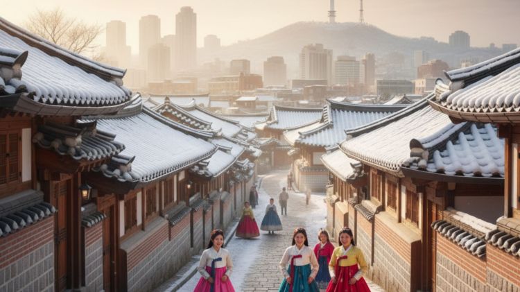 South Korea in winter is where snowy serenity meets vibrant culture — a season that wraps the country in a crisp, magical charm. As temperatures drop, the landscapes transform into a winter wonderland, blending traditional beauty with modern excitement. From the frosty palaces of Seoul dusted in snow to cozy cafés playing soft K-pop tunes, winter here is peaceful yet alive. The ski resorts of Pyeongchang and Yongpyong call out to thrill-seekers, while the hot springs of Asan and the quiet temples offer warmth and tranquility. Jeju Island wears a quieter charm in winter — think snow-tipped lava trails and peaceful coastlines. Head to Busan for ocean views with winter breeze or wander through traditional villages like Bukchon, where time slows down. Don’t miss the magic of winter festivals — from sparkling light shows and ice sculptures to steaming street food stalls serving tteokguk, odeng, and hotteok. Whether you’re chasing snowflakes, soaking in culture, or sipping hot drinks in neon-lit streets, South Korea in winter is a heartwarming blend of calm, culture, and cozy adventure.